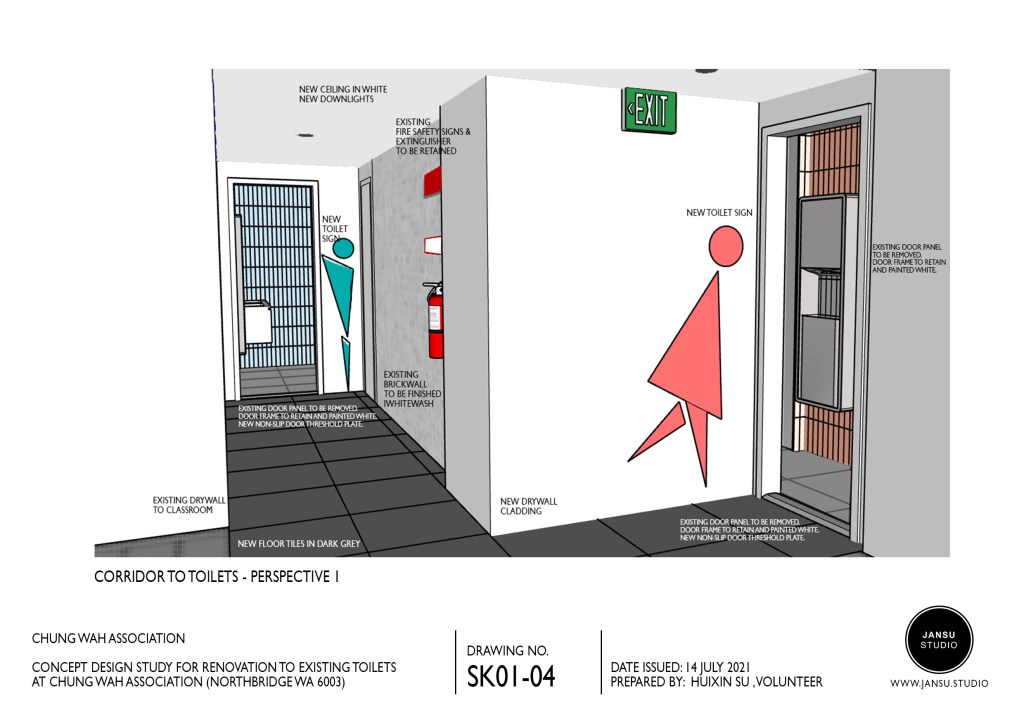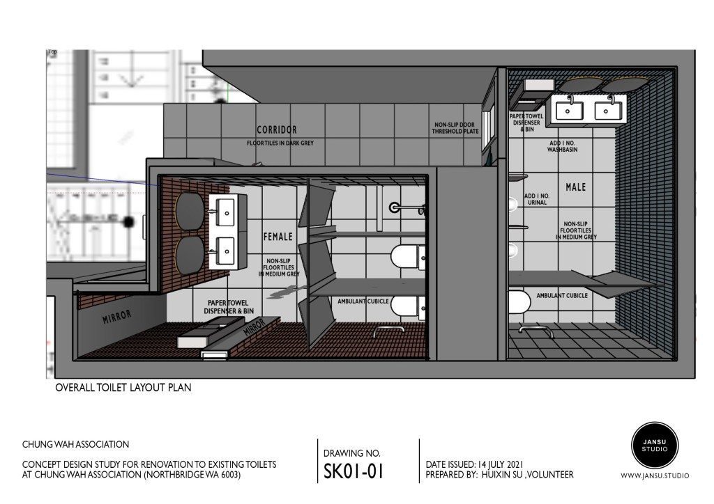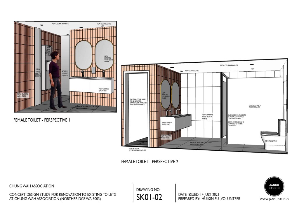 As part of our pro bono work to contribute to the local community, Susie had the pleasure to volunteer her architectural experience to support Perth’s Chung Wah Association in redesigning their toilets.